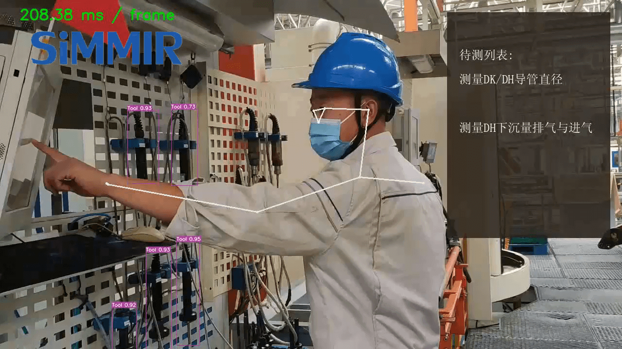 发动机缸体生产好以后需要对多项指标进行人工检测,员工检测过程中可能存在不按工艺顺序检测/选错工具等情况,而现场没有有效手段可以防止员工犯错或发现员工犯错的手段